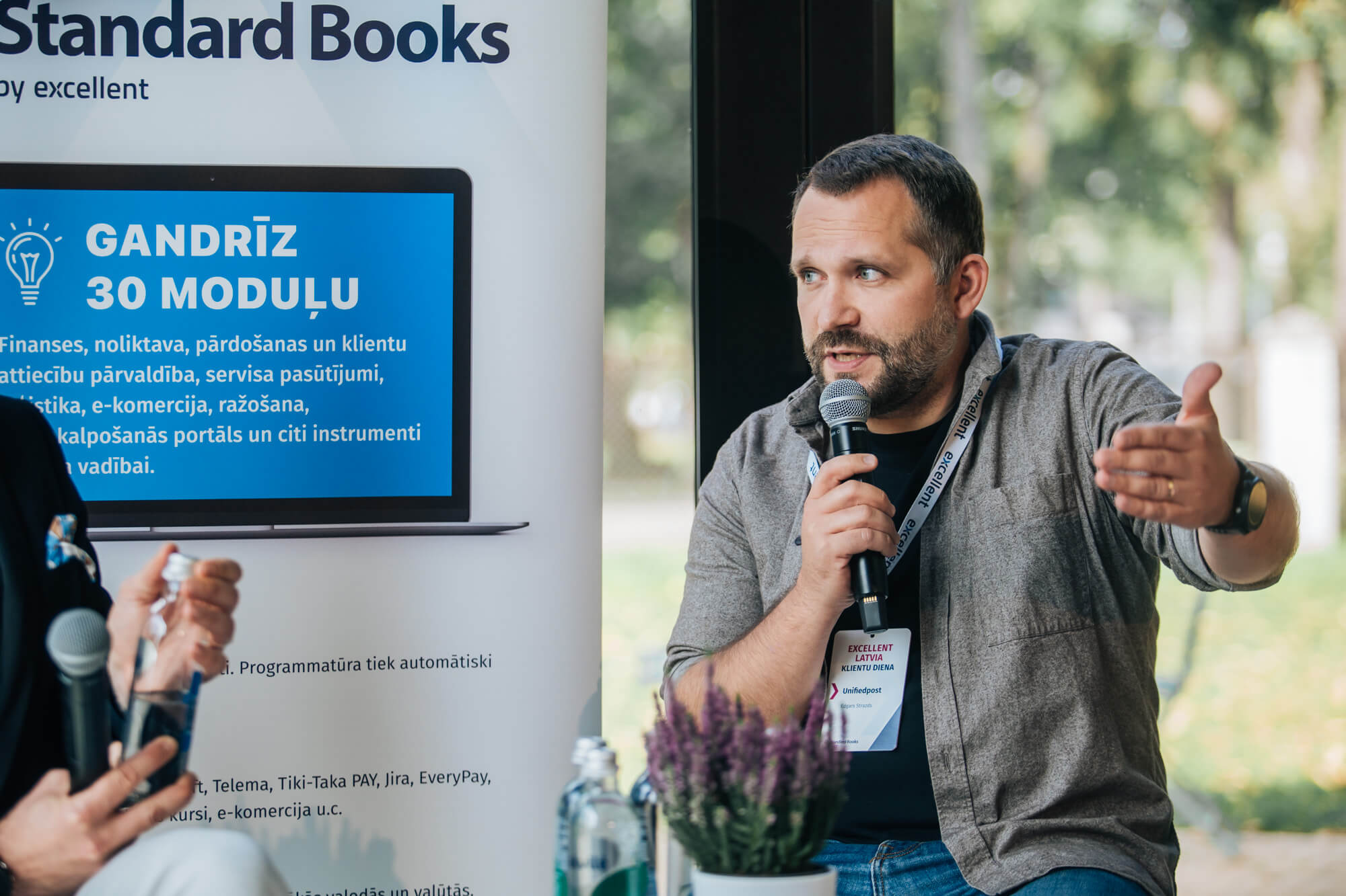Foto: Edgars Strazds sarunā ar Elvi Kvalbergu Excellent Klientu dienā 2025