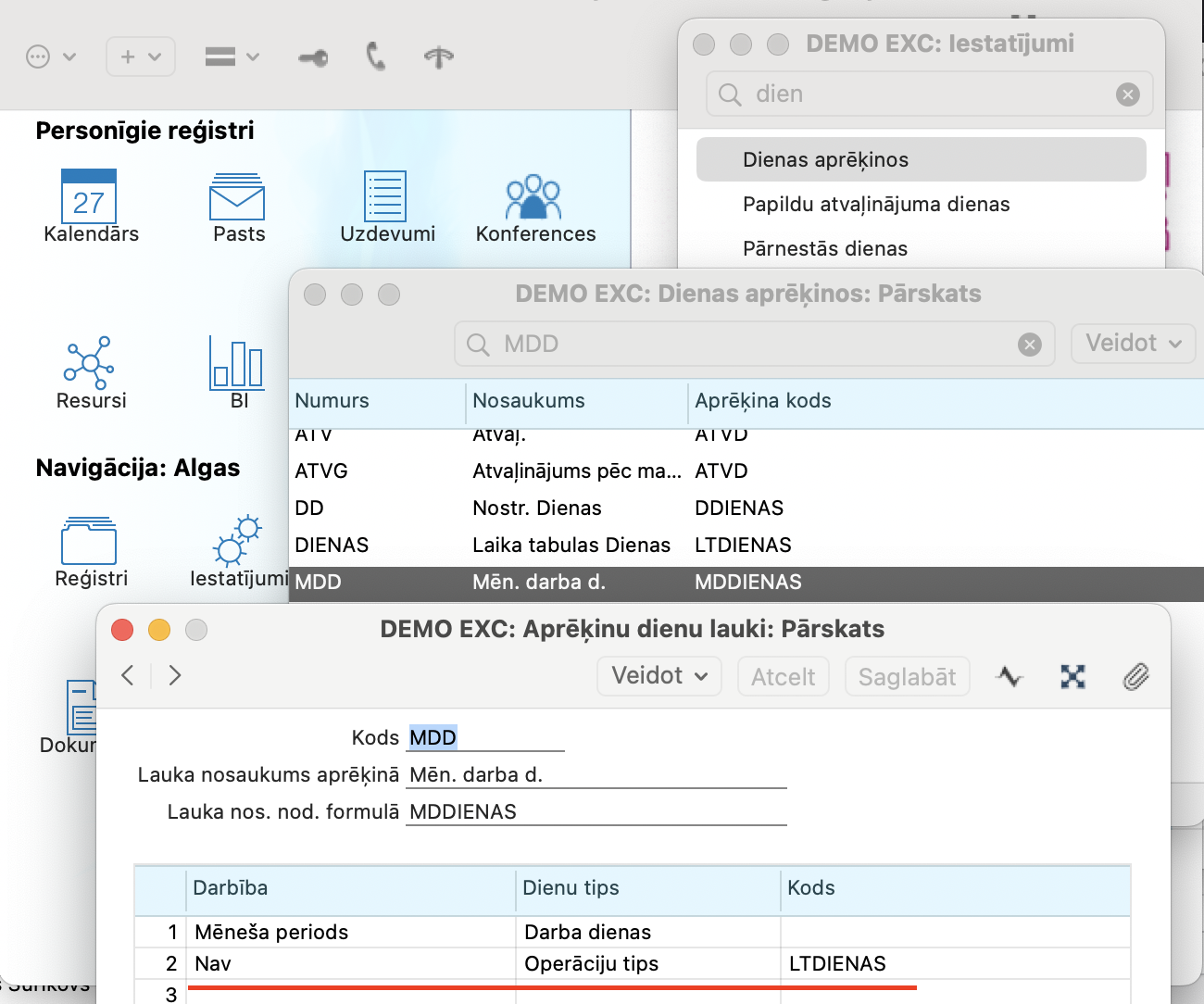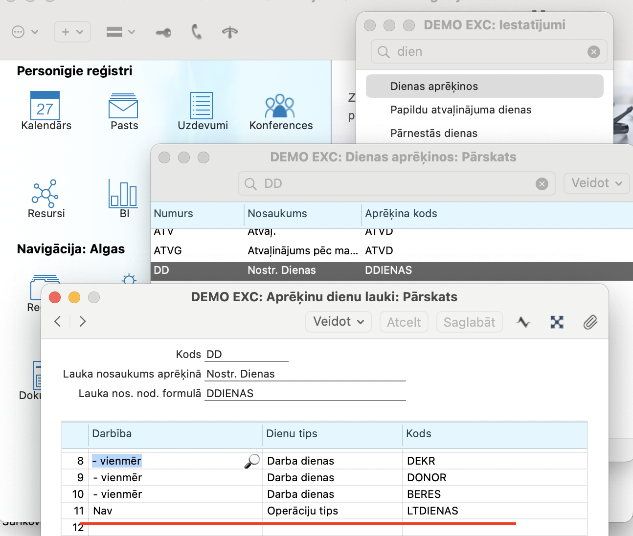 3. balstoties uz Dienas operācijas tipu “LTDIENAS” (Laika tabulas dienas), kuru jāievieto