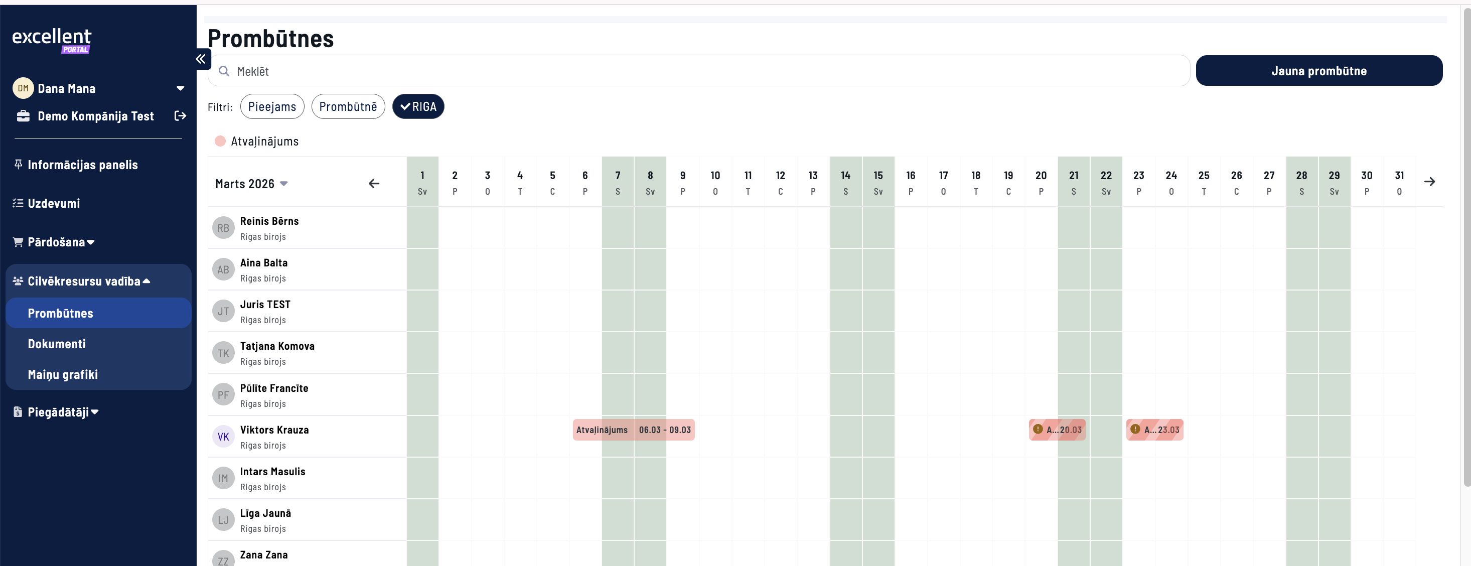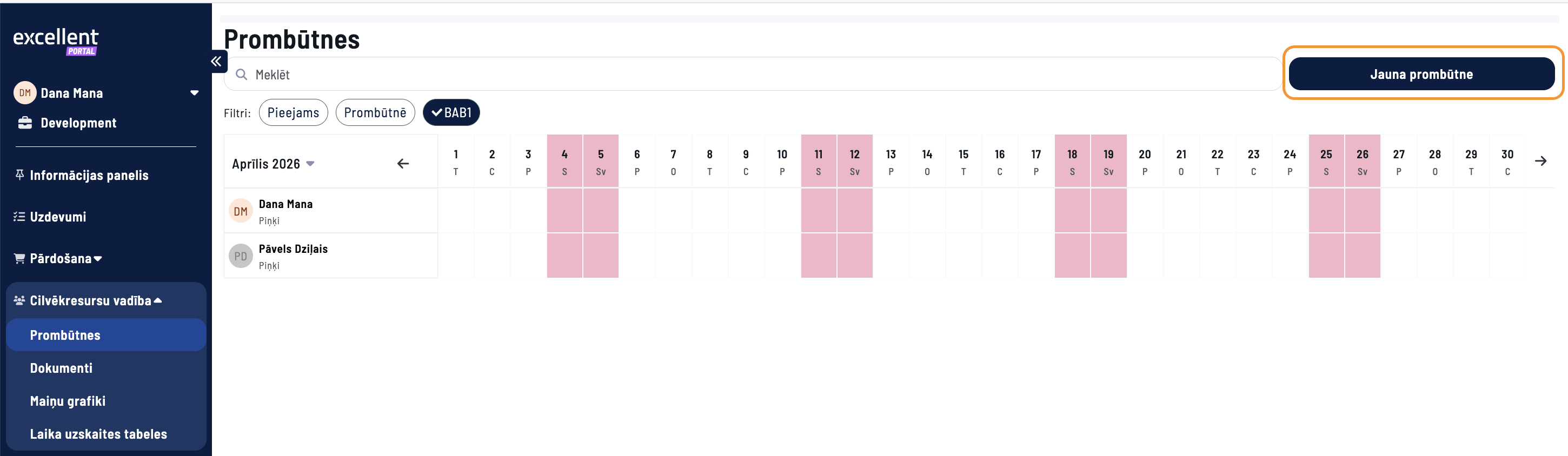 Viena departamenta darbinieki redzēs viens otra Prombūtnes plānus Excellent Portālā. Departamenta vadītājs redzēs sava departamenta kolēģu prombūtnes plānus un sava pārvaldītā departamenta darbinieku prombūtnes plānus.