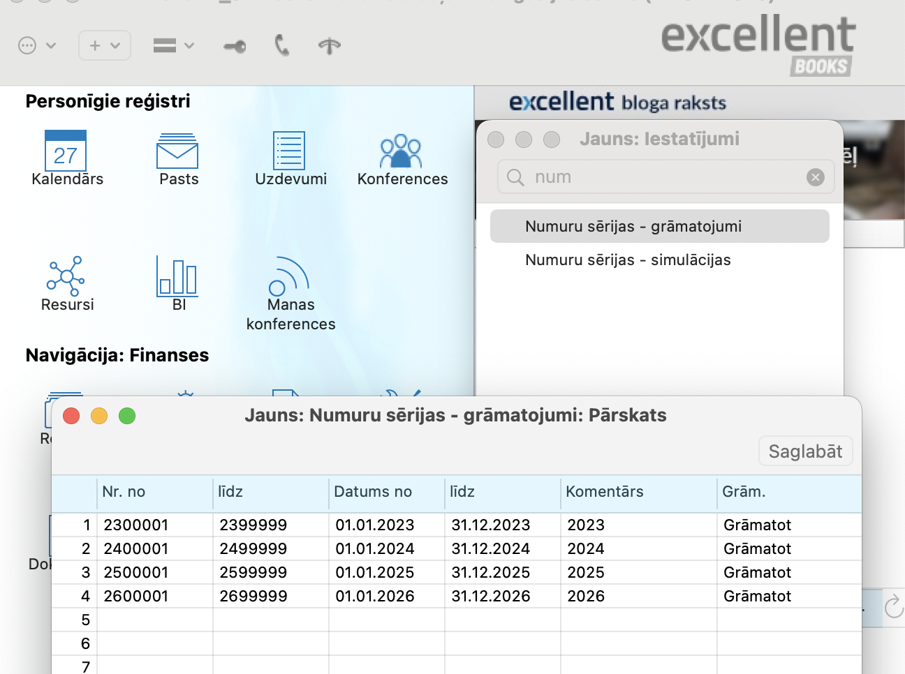 Iesākām Excellent ERP un Excellent Books programmā veikt sekojošo darbību: