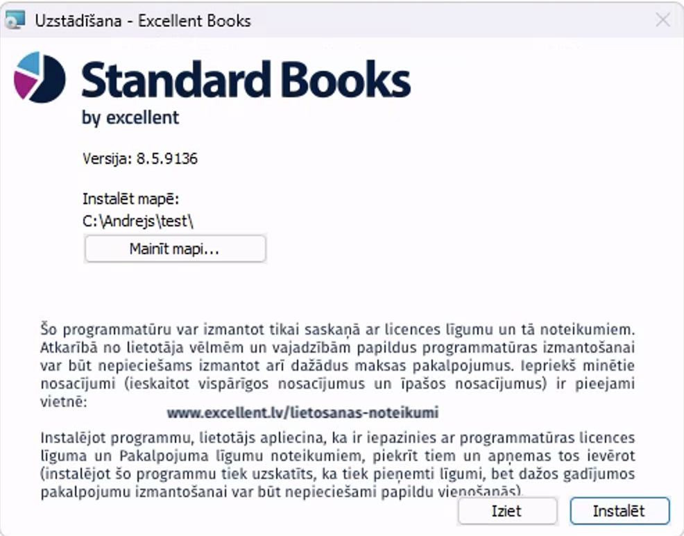 NB! Nedrīkst veikt instalēšanu mapē, kuru programma piedāvā pēc noklusējuma (C:\Program Files(x86)\Standard Apps\)