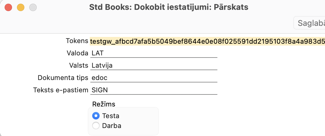 Režīms – darba, ja lietojat režīmu ar īstiem parakstiem