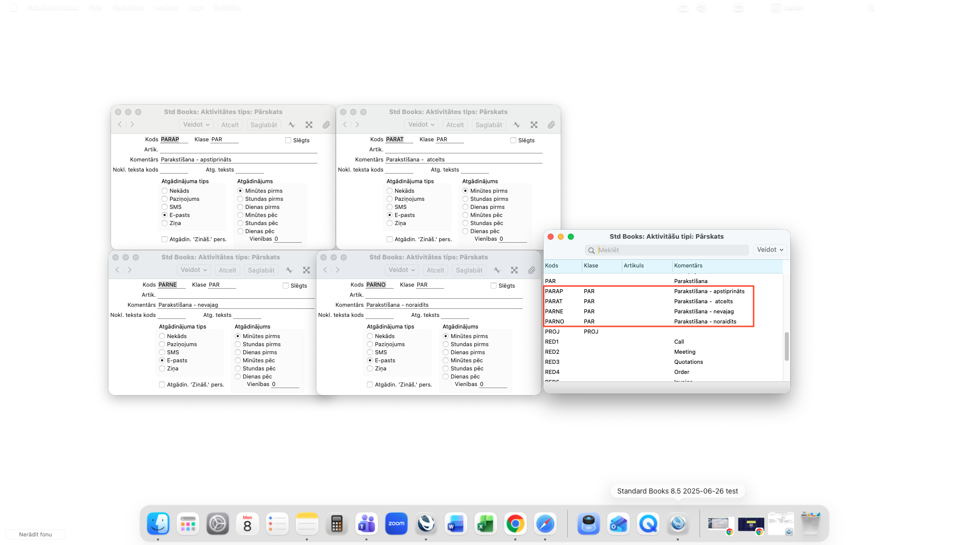 CRM > Iestatījumi > Aktivitāšu tipi jāizveido aktivitāšu tipi pēc šāda vai līdzīga parauga.