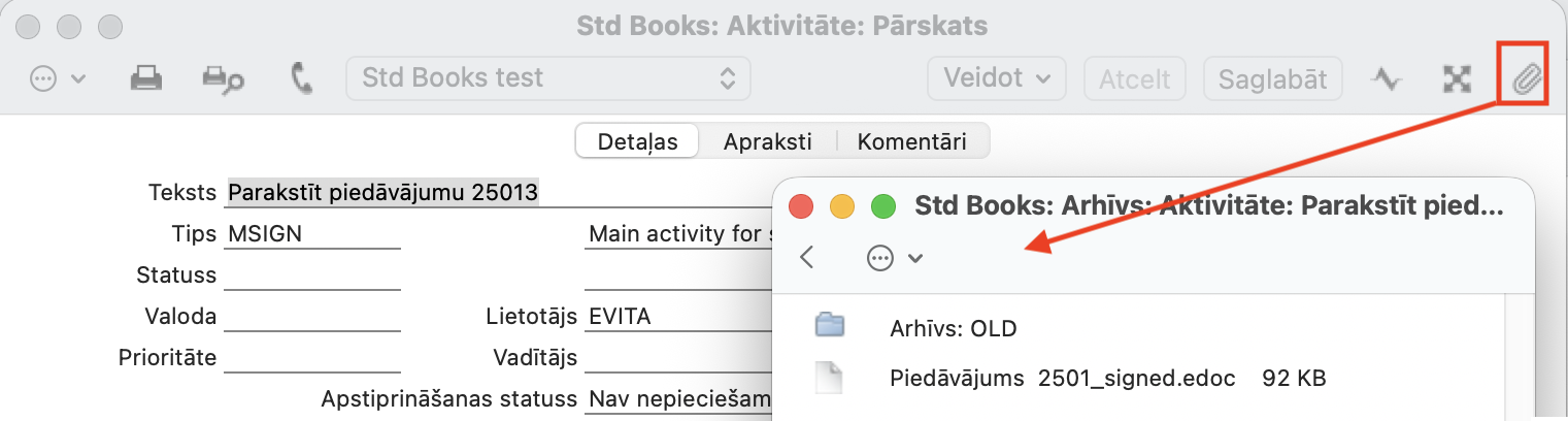 Tas būs formā, piemēram, Rēķins 250000_signed.edoc vai .asice. Ja vēlāk tiks pievienots vēl viens paraksts, tad atjaunotais nosaukums būs Rēķins 250000_1.edoc. Oriģinālais piedāvājuma dokuments atrodams mapē ar nosaukumu Arhīvs: Old.