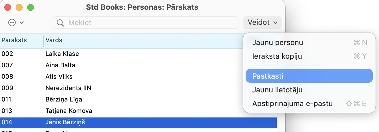 4. Izveidojiet jaunu pastkasti personai modulī Sistēma > Reģistri > Personas. Sarakstā aktivizējiet personas vārdu un Veidot izvēlnē atlasiet “Pastkasti”.