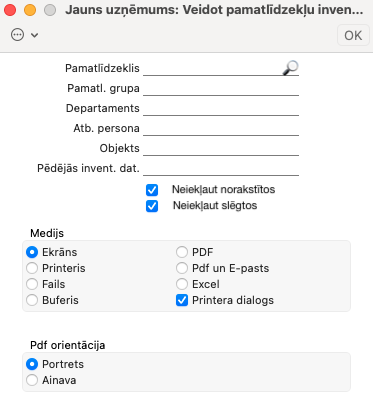 Atzīmē šo opciju, ja vēlies atskaitē neiekļaut pamatlīdzekļus, kas ir atzīmēti kā slēgti.