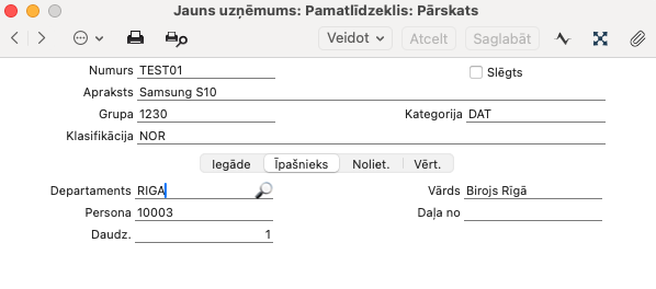 Ja šādu ierakstu nav, struktūrvienība tiks ņemta no Pamatlīdzekļa kartītes sadaļas Īpašnieks.