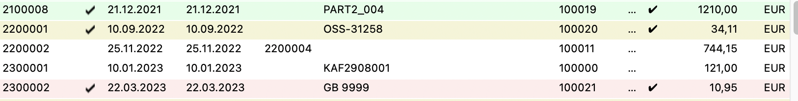 Zaļš – Ienākošais rēķins ir pilnībā apmaksāts vai kreditēts, un atlikums ir 0 (nulle).